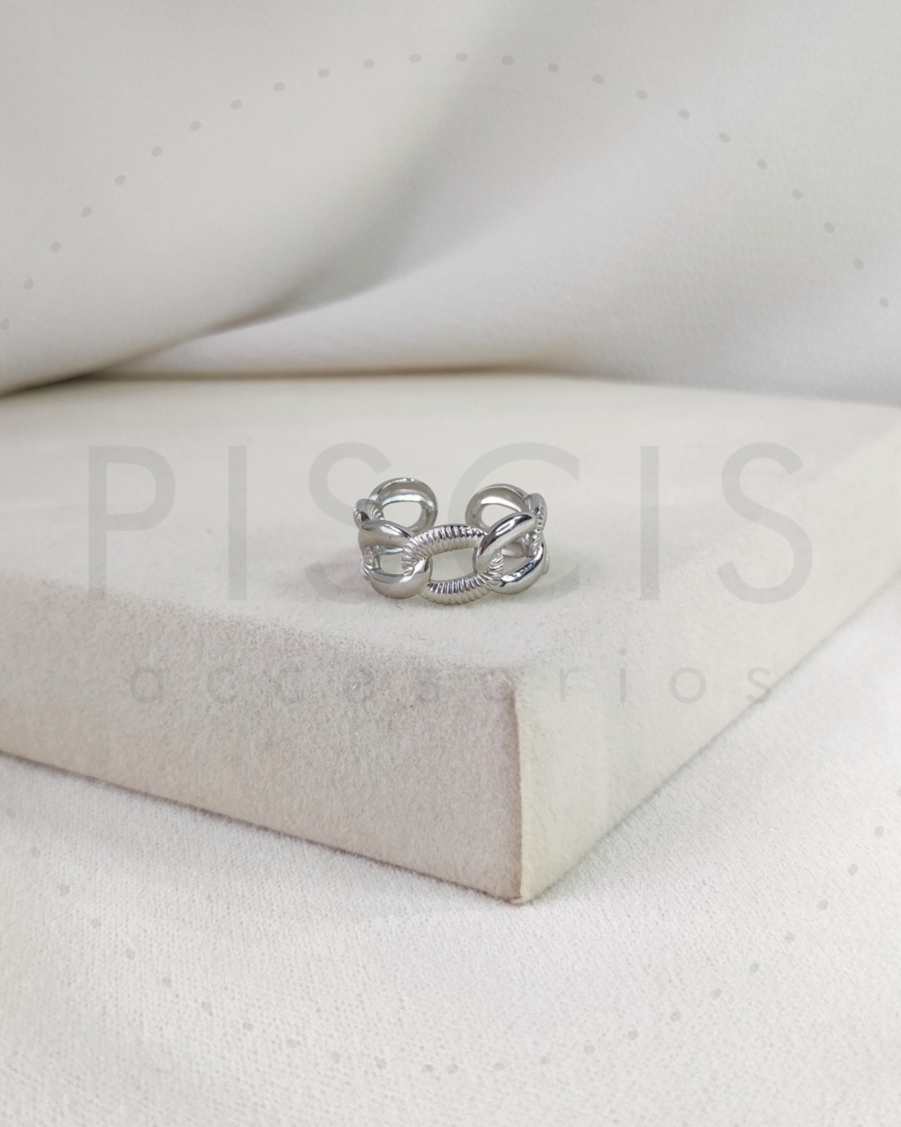 Anillo Sirca plateado, regulable. Categoría: Anillos Descripción Descripción Acero quirúrgico. Productos relacionados Anillo alianza dorada mediana. Anillo ancho varias formas. Anillo piedra ovalada varios modelos. Anillo estrella infinito.