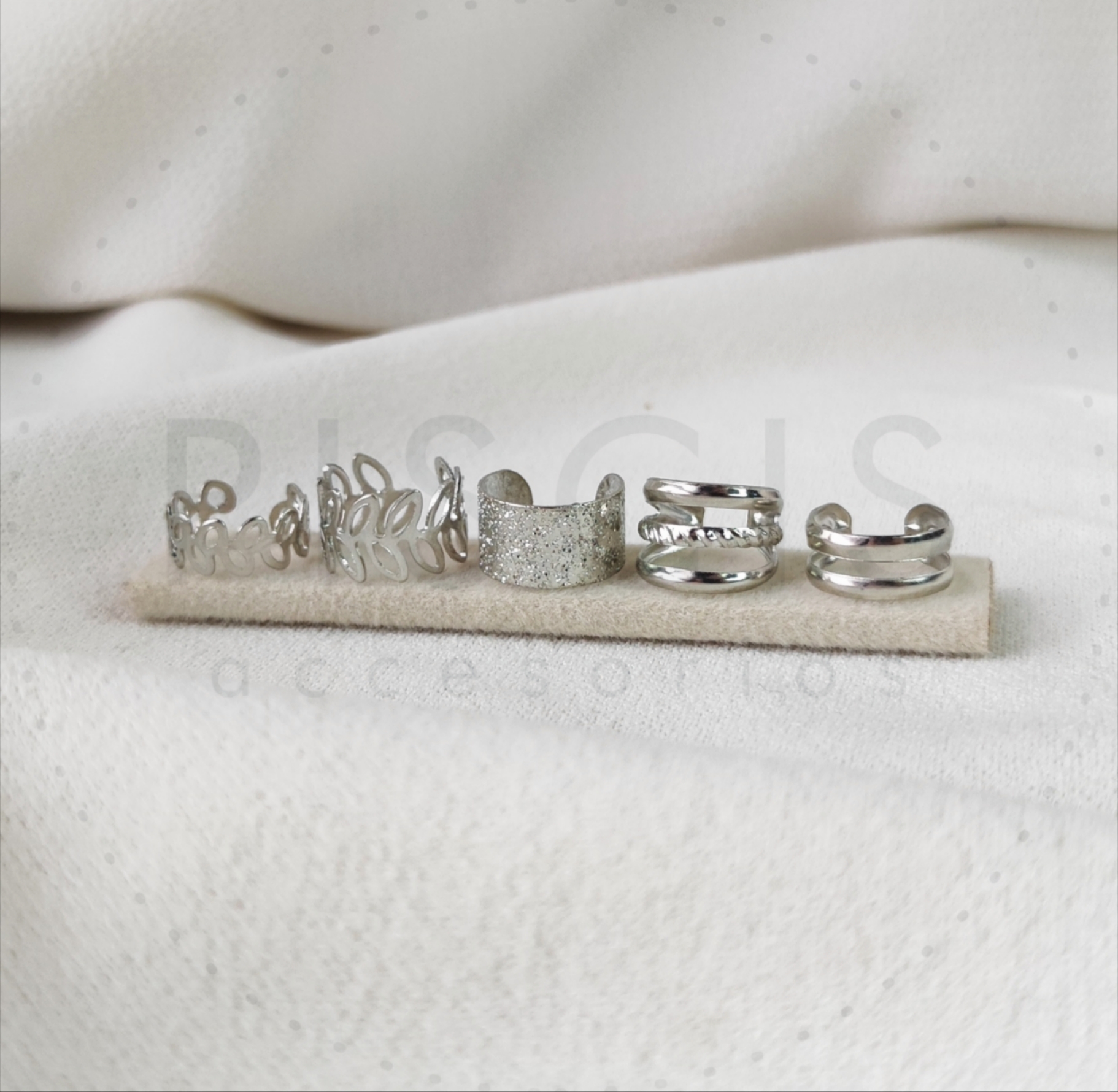 Aros Ear cuff, plateados Set x5. Categorías: Aros/Argollas, Falsos piercings Descripción Descripción Metálicos. Productos relacionados Falso septum bull Arg. Cati, cherry Arg. Colibrí rosas, doradas. Aros Chapones rombo.