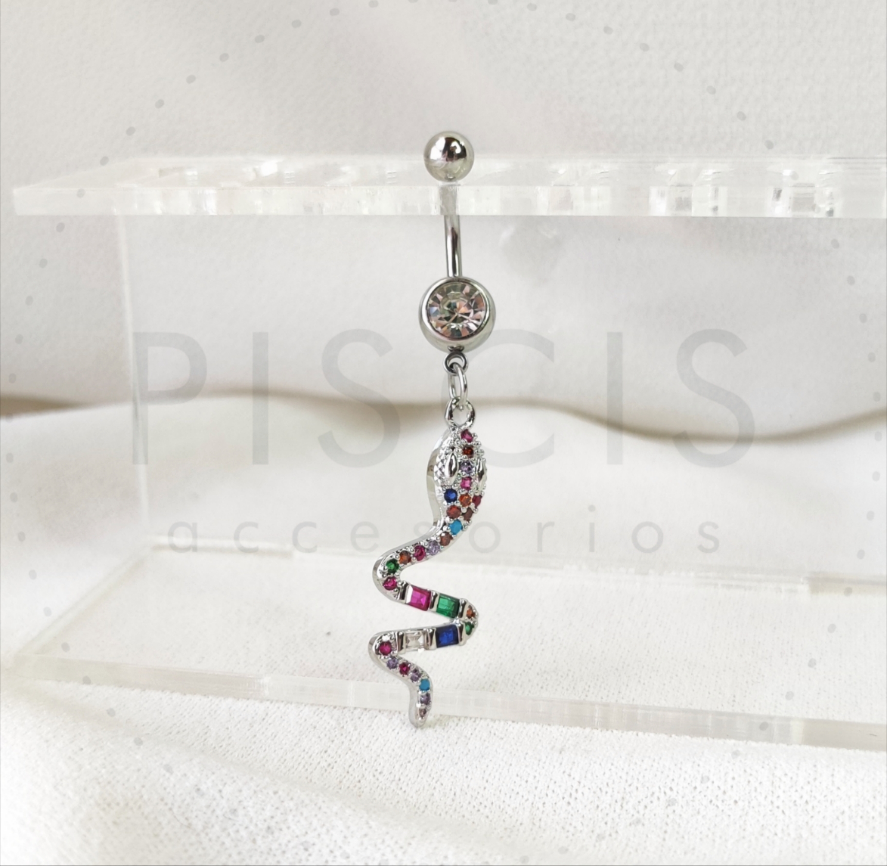 Piercing ombligo colgante serpiente, plateado. Categoría: Ombligo Descripción Descripción Acero quirúrgico. Productos relacionados Piercing ombligo doble strass, estrella Piercing ombligo corazón con strass. Piercing ombligo serpiente multistrass. Piercing ombligo corazón con alas